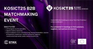 STIKK, together with Enterprise Europe Network – Kosovo as co-organizer, is excited to invite you to participate in KosICT 2025 B2B Matchmaking Event!